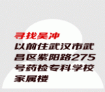 正文 失踪人员:吴冲 访客 V游客 /1970-01-01/5.04 K阅读/0评论 0101 姓名: 吴冲 性别: 男性 生日: 1988-04-09 籍贯: 湖北武汉 失踪时间: 2020-02-09 失踪地点: 武汉市武昌区 失踪时身高: 175 在线联系: 微信号:chinaxunqin_com 详情 以前住武汉市武昌区紫阳路275号药检专科学校家属楼,后来学校拆迁了,电话变更后就联系不上了。 寻人启事资料、照片等均由用户提供,如侵犯任何第三人肖像权、隐私权或其他合法权益,请联系本站删除!